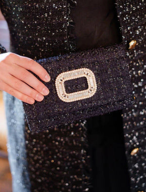 Avery Black Clutch with Ribbon and gold Snaffle