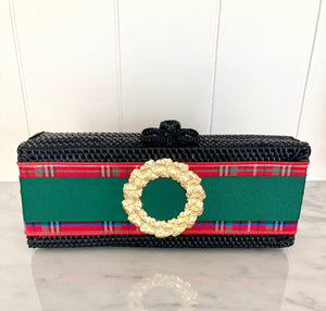 Avery Plaid Clutch with Gold Bow motif