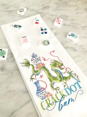 Crack Dot Bam Mahjong Dragon Blue Tea Towel